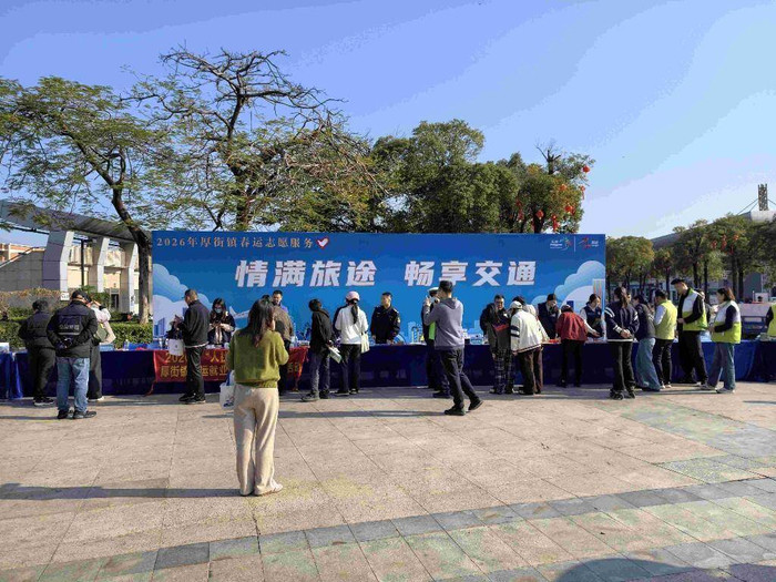 2月2日上午,东莞市厚街镇多个职能部门在厚街体育公园联合举办春运志愿服务活动。此次活动以“平安春运、温馨春运”为主题,通过政策宣传、业务咨询、有奖互动等多种形式,为即将踏上返乡旅途的市民提供安全保障与新春关怀,以实际行动践行服务理念,助力市民顺畅出行。